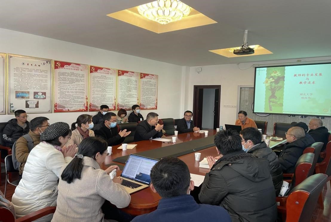 为了进一步提升我院教师课程思政教研能力,2021年12月8日—9日,学院“课程思政”专题培训讲座在逸夫楼D3004会议室顺利举行。本次“课程思政”专题培训讲座分为两场:第一场是湖北大学师范(教育)学院的明庆华教授做了题为《教师的专业发展与教学追求》的讲座,讲座由教学副院长徐弢主持。第二场是湖北大学马克思主义学院的郭劲松教授做了题为《课程思政建设漫谈》的讲座,讲座由党委书记汤德森主持,学院全体教师及部分博士生参加了这两次讲座。