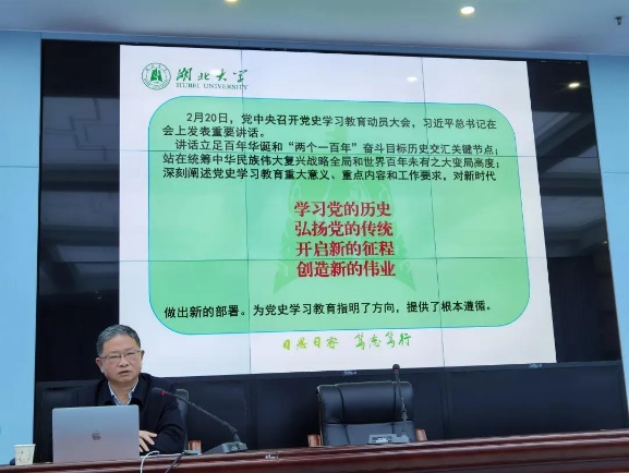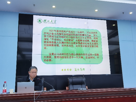 为进一步推进党史学习教育,深刻把握党史学习教育的重点,3月31日下午,湖北大学校党委常委、纪委书记檀坤华同志为365英国上市公司全体师生党员作了题为“学史明理强信念,自我革命葆青春”的党史学习教育宣讲报告。365英国上市公司党委书记汤德森主持会议,全体教职工和学生党员共同参加学习。