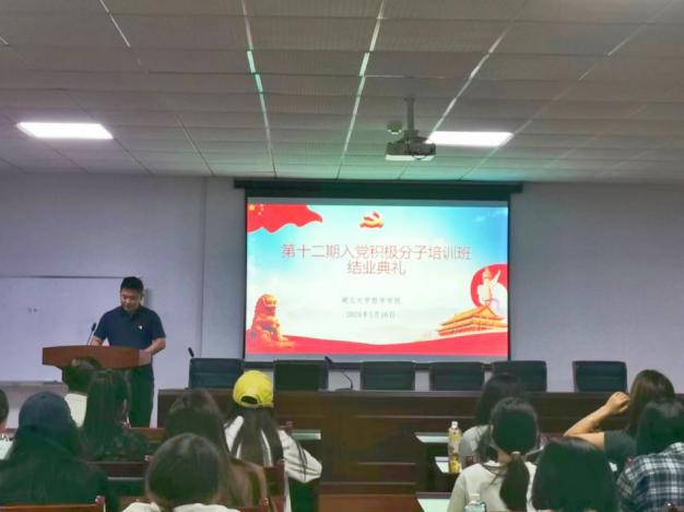 陈文超代表学院党委对培训班学员顺利结业表示祝贺,并作结业典礼总结讲话。他强调,第一,要树立终身学习理念,持续加强党的创新理论学习,坚定理想信念;第二,要端正入党动机,在接受组织教育和考验中切实解决入党为了什么、为什么入党、入党后怎么做的问题;第三,要坚持学以致用、知行合一,在学习实践中时刻发挥先锋模范作用,以实际行动争取早日入党。