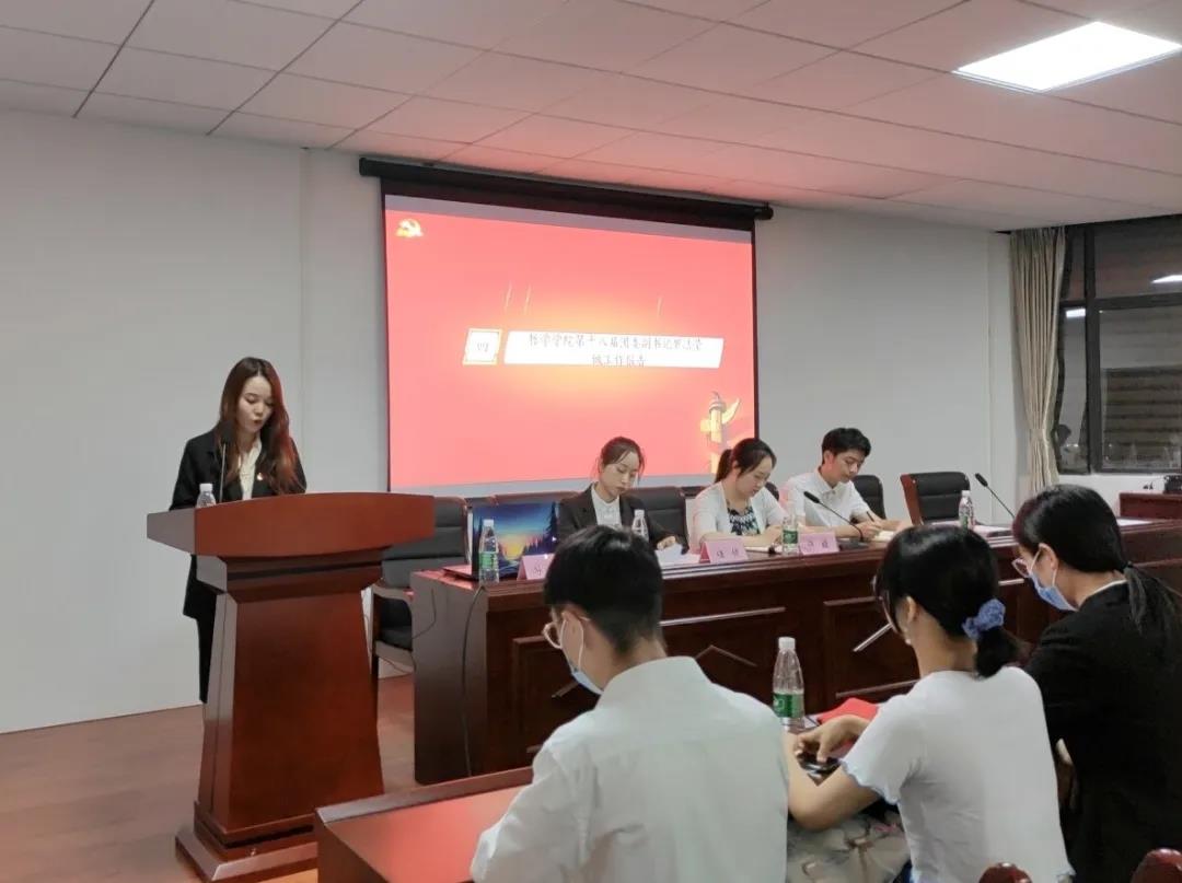 会上,党委副书记许媛在致辞中对一年以来学院团委和学生会的工作表示了充分肯定,她从自身经历出发说明了学生工作经历的意义以及如何做好学生工作,并鼓励学生们在主攻学业的前提下积极投入到学生工作中,一同成长,充实自己。许书记同时指出,在建党一百周年的关键节点上,新时期大学生更要牢记使命、勇于担当,认真学习习近平总书记系列重要讲话,切实加强思想道德建设,培育和践行社会主义核心价值观。