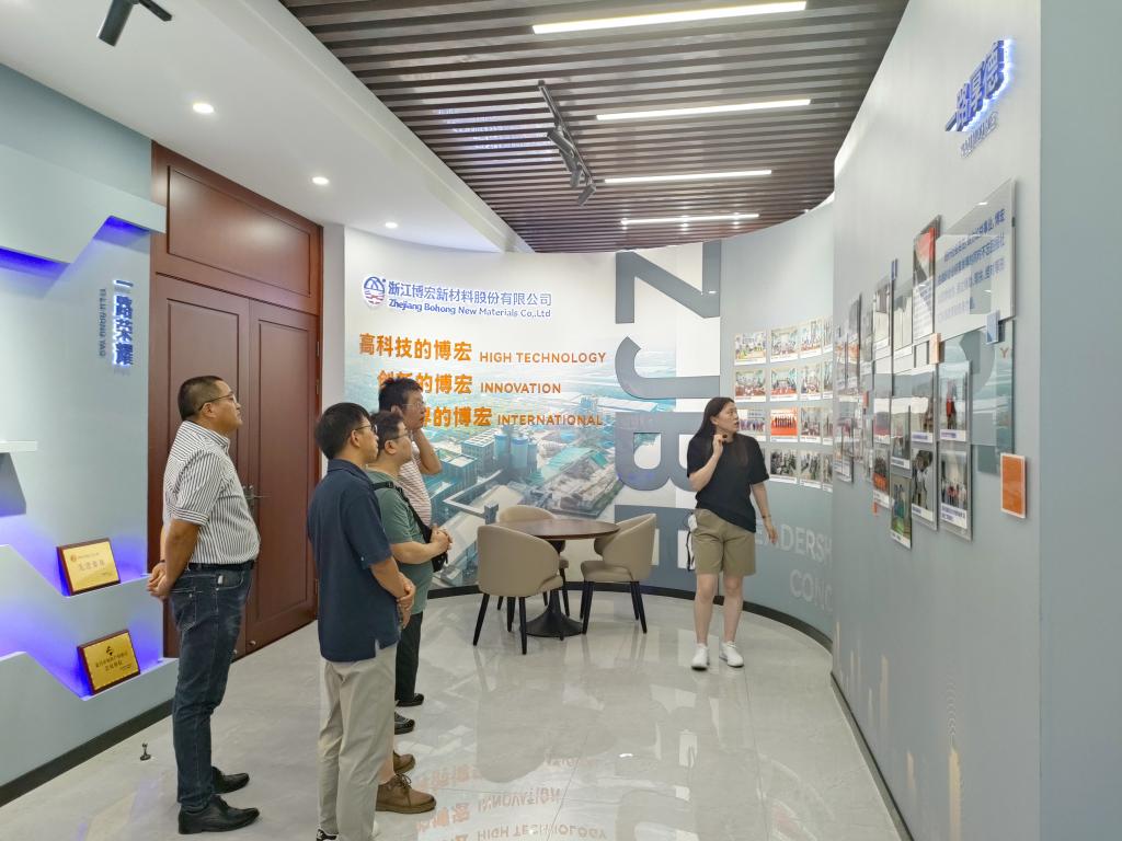 第五站实践队来浙江博宏新材料股份有限公司,该公司是一家专业从事节能材料开发与研制的国家级高新技术企业,也是浙江省“专精特新”企业。通过参观了解到该公司现拥有“中国绿色建材产品”干混砂浆系列三星级认证证书,发明专利17项、年总产60万吨干混砂浆生产线2条,通过一步步技术变革做到了新技术、高产能。此外该公司极其重视校企合作,对高技术人才的培养和引进也非常重视。公司拥有一支技术实力雄厚的研发团队,与浙江知名高校建立了长期合作关系,共同开展科研合作和人才培养项目。同时,公司还积极引进具有相关专业背景和经验的高级技术人才,为企业的技术创新和发展提供了强有力地支持。
