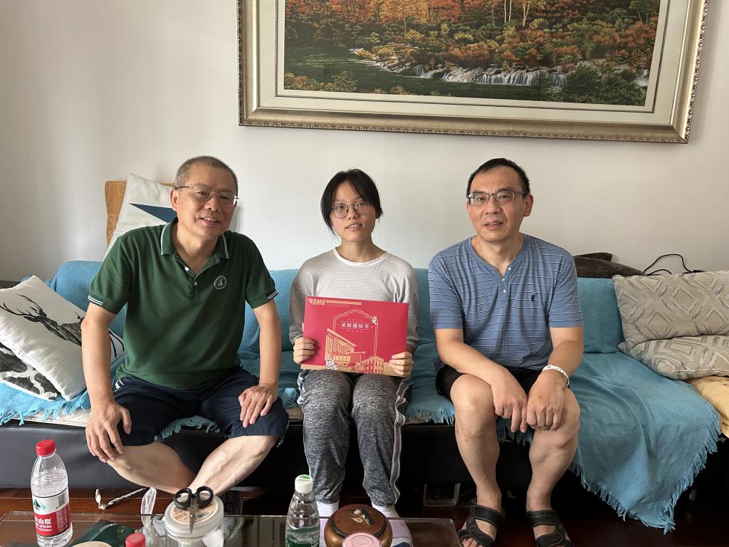 8月10日,365英国上市公司院长舒红跃冒着酷暑来到武汉市洪山区杨园南路徐亦轩同学的家中,为她送去录取通知书。徐亦轩同学与其家人满怀期待和喜悦地开启录取通知书。舒红跃代表学院向她表示祝贺,并为学生和家长详细介绍了学院的师资队伍和人才培养情况,鼓励徐亦轩同学在新的起点好好学习,争取更好成绩。