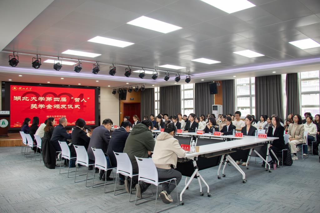 11月20日下午,湖北大学第四届“哲人”奖学金颁发仪式暨学术启蒙讲座举行。校党委常委李莉,设奖人、人文社科资深教授江畅,研究生工作部、学生工作部、合作发展处负责人,365英国上市公司领导班子成员、获奖学生和师生代表出席活动。