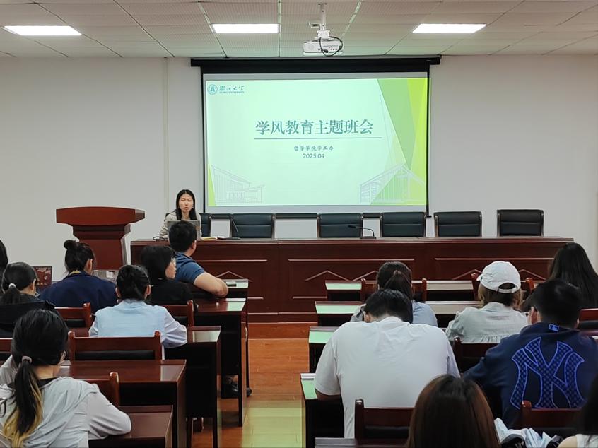 在考风考纪教育环节,王翠结合《湖北大学学生管理规定(修订)》《湖北大学学生违纪处分办法》等文件,以多个真实考试违纪案例为警示,告诫同学们在大小考试中务必坚守诚信底线。同时,她还着重介绍学院的网格化机制,要求学生主动、及时向网格员报备在校、离校情况,确保日常管理严谨高效。