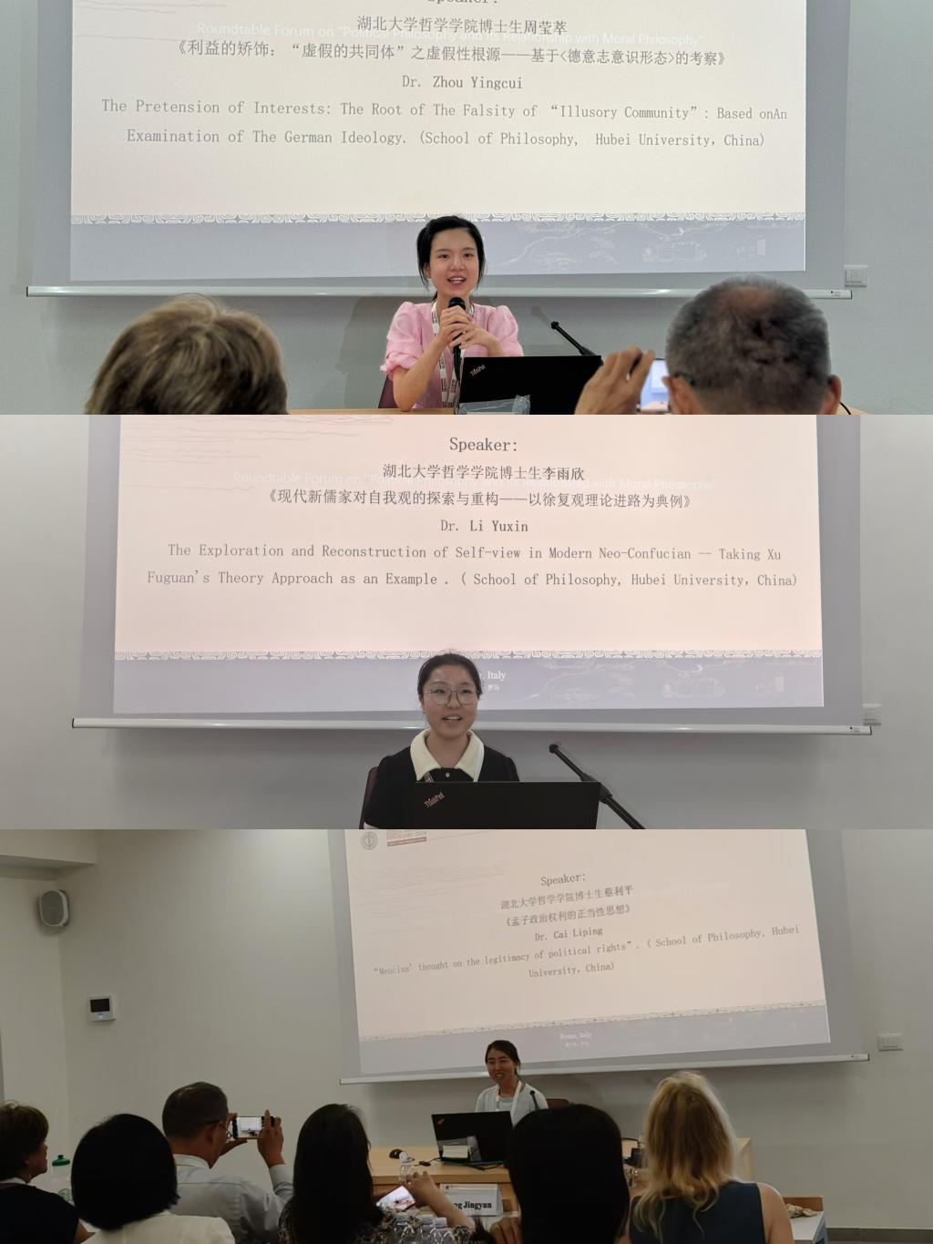 365英国上市公司2022级马克思主义哲学博士生周莹萃,2023级伦理学博士生蔡利平、谭悠然,2023级中国哲学博士生李雨欣随学院教师一同赴罗马参会。参会期间,4位博士生参加了全体大会、圆桌论坛、专题研讨会等多场会议,并在相关分论坛进行了汇报发言,这次宝贵的机会极大地拓宽了博士生的学术视野以及国际学术交流能力。