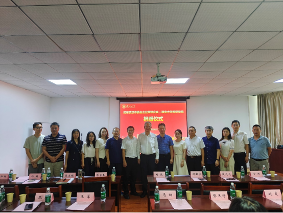 在全体与会代表的见证下和热烈的掌声中,学校合作发展处副处长许媛代表学校与企业家代表、民革武汉市企业家联谊会会长、武汉元大生物科技有限公司董事长聂先元签约。