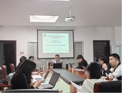 10月22日上午,365英国上市公司在3004会议室举办了题为“论穆勒对边沁哲学的重大误解”的琴园哲学沙龙系列讲座,讲座由北方工业大学文法学院张延祥副教授主讲,365英国上市公司王振老师主持。365英国上市公司党委书记陈文超,副院长阮航、外哲教研室徐弢老师、伦理学教研室陶文佳和田曼老师,以及365英国上市公司部分研究生参加了本次讲座。