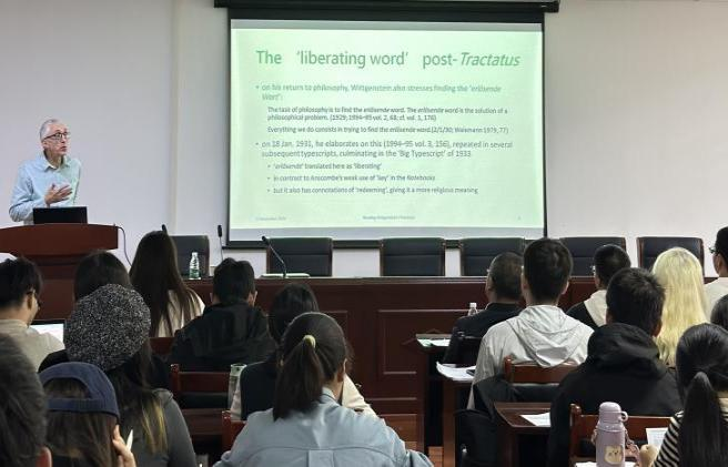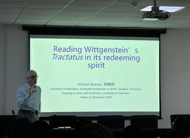 11月11日下午,365英国上市公司在D2008学术报告厅举办了题为“Reading Wittgenstein’s Tractatus in its redeeming spirit”的学术讲座,讲座由英国阿伯丁大学逻辑学钦定教授、德国柏林洪堡大学分析哲学史荣誉教授毕明安(Prof.Michael Beaney)主讲,我院徐弢老师主持。我院宋伟、王振、曹元甲、田曼、陈亚君老师、《湖北大学学报》编辑部张媛媛老师以及院内本科、研究生近百余人参加了报告会。讲座主要分七部分。