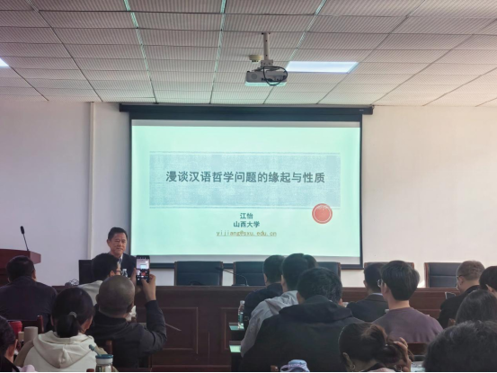 讲座伊始,江老师谈到了汉语哲学的缘起——让哲学说汉语。让哲学说汉语并非简单用“汉语”这种语言载体表达哲学。事实上,让哲学说汉语意味着:汉语本身可以彰显一些哲学的普遍概念,一些哲学家在讨论哲学问题时能普遍使用的术语或者观念。