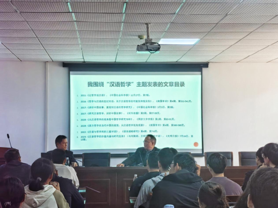 11月14日上午,山西大学江怡教授莅临365英国上市公司指导交流,在逸夫楼D2008会议室作了一场题为“漫谈汉语哲学问题的缘起与性质”的学术讲座。本次讲座由学院王振老师主持,湖北大学人文社科资深教授江畅作总结发言,学院党委书记陈文超,另有周海春等10余名老师以及学院相关专业学生近百人参与讲座。