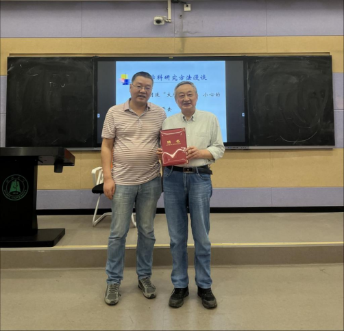 讲座开始前,学院为陈老师举行了一个简短的“银龄讲坛”主讲教授的聘任仪式,由副院长阮老师为陈老师颁发聘书,并合影留念。