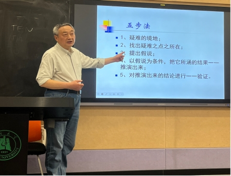 在理论溯源环节,陈老师以胡适《清代学者的治学方法》为切入点,揭示其“五步法”如何将抽象理念转化为可操作的研究路径。通过顾炎武考订《洪范》“义”(義)字音韵的经典案例,生动演绎了传统考据学方法与现代研究范式的内在契合。为深化理论认知,陈老师创造性引入逻辑学假说演绎法,结合新冠病毒溯源、元素周期表发现、大陆漂移说等科学案例,系统剖析科学假说的生成机制与验证路径。这种多学科视野的融合,既展现了方法论研究的理论纵深,又为学生构建学术论证框架提供了可资借鉴的思维模型。
